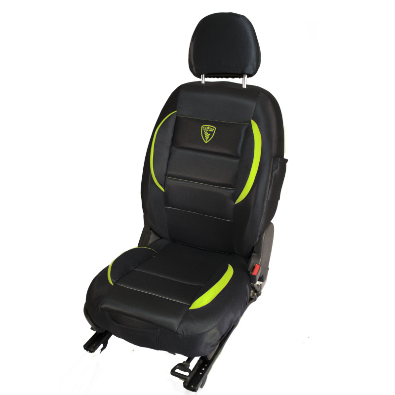 FORRO PARA SILLAS DE CARRO Universal Set completo para todos los asientos ( NEGRO/VERDE MANZANA 202 12)